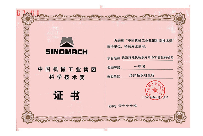中國機(jī)械工業(yè)集團(tuán)科學(xué)技術(shù)獎(jiǎng)一等獎(jiǎng)