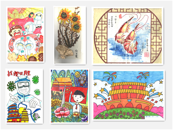 此次征集活動(dòng)共收到作品91件,其中不僅有硬筆、毛筆、蠟筆、水粉畫、景物素描等書繪類創(chuàng)作,還有色彩斑斕的手工作品。孩子們用手工展現(xiàn)童心世界,用畫筆贊美抗擊新冠肺炎疫情的英雄,用丹青書寫中華文化。作品表現(xiàn)力強(qiáng),充滿奇思妙想,全面展示出孩子們豐富的想象力和動(dòng)手能力,表現(xiàn)出新時(shí)代少年兒童的別樣風(fēng)采。