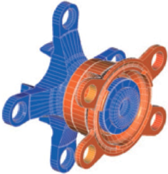 NTN采用有限元分析來確定減重的同時保持強度和剛度,以滿足所需的性能要求。最優(yōu)形狀通過拓撲優(yōu)化得到。一種超輕型輪轂軸承形狀被研制出來,如圖2所示。NTN采用積累的技術(shù),在滿足要求的技術(shù)規(guī)范的同時,提供最輕質(zhì)量的最優(yōu)形狀。