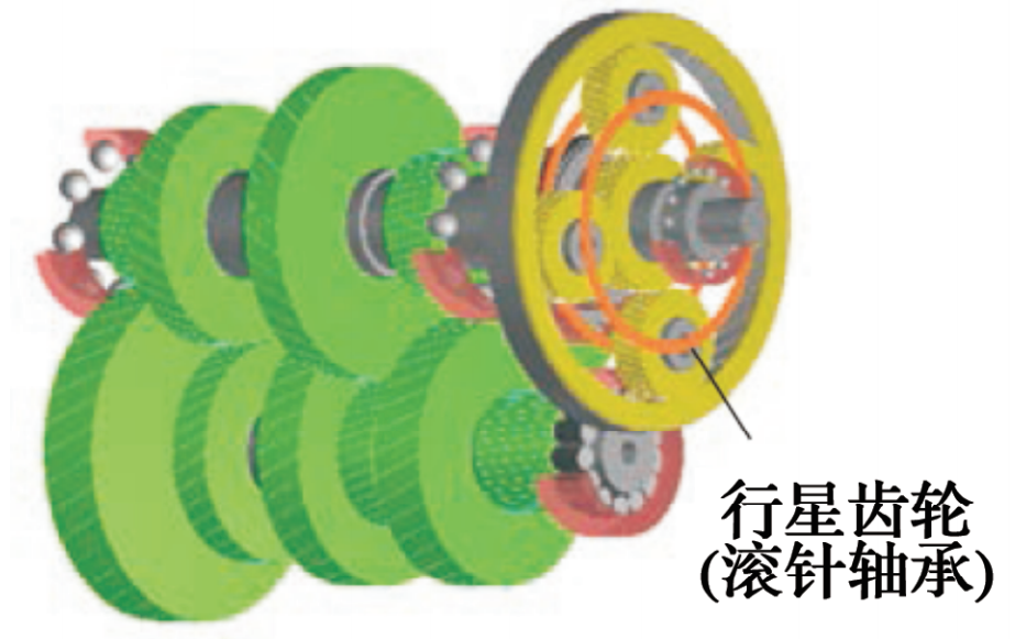 在高速旋轉(zhuǎn)時(shí),由于轉(zhuǎn)速引起的離心力大于齒輪載荷,滾針載荷分布向行星架直徑方向移動(dòng)。此時(shí),在滾針離開(kāi)承載區(qū)的階段,行星齒輪自轉(zhuǎn)方向與離心力方向相同,自由轉(zhuǎn)動(dòng)的滾針與保持架碰撞,產(chǎn)生較大的接觸載荷。在反向階段,接觸載荷由保持架對(duì)滾針的擠壓產(chǎn)生??紤]到這種機(jī)制,通過(guò)減輕滾針質(zhì)量、優(yōu)化工作游隙等措施降低行星齒輪滾針軸承保持架的接觸載荷是可行的。因此,通過(guò)重新檢查內(nèi)部參數(shù)(如保持架),發(fā)現(xiàn)與標(biāo)準(zhǔn)設(shè)計(jì)相比,保持架上的接觸載荷可減小高達(dá)79%,并證實(shí)其能在更高速度范圍內(nèi)旋轉(zhuǎn)。軸承優(yōu)化設(shè)計(jì)的結(jié)果如圖14所示,基于S.S.A.P./MBD對(duì)復(fù)雜工況下的保持架強(qiáng)度進(jìn)行研究,可防止保持架疲勞斷裂。