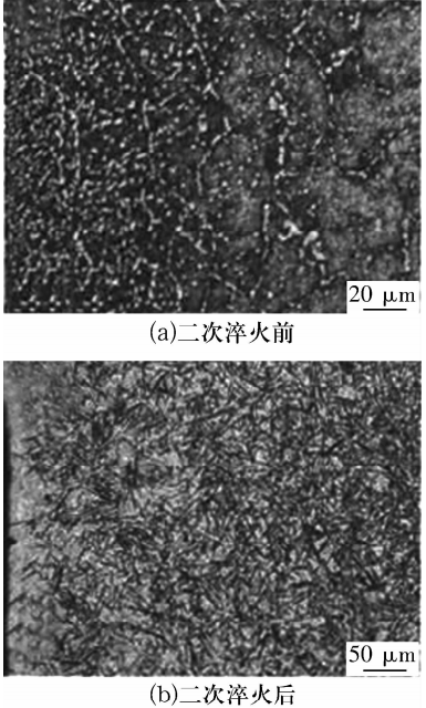 滲碳軸承鋼具有高強(qiáng)度、高韌性和高疲勞壽命的特點(diǎn),常用于有大沖擊載荷的工況,不同的熱處理工藝使其產(chǎn)生不同的微觀組織,對(duì)滲碳層組織和材料力學(xué)性能產(chǎn)生重要的影響。滲碳軸承鋼由表面至心部滲碳層碳濃度處于連續(xù)變化狀態(tài),同時(shí)心部組織與滲碳層組織之間還存在力學(xué)性能匹配問題,通過熱處理工藝參數(shù)的合理搭配使?jié)B碳層組織和基體組織的匹配性達(dá)到最優(yōu)組合,是一個(gè)漫長且復(fù)雜的研究過程。而且,滲碳軸承鋼在滲碳及后續(xù)熱處理過程中可能產(chǎn)生的組織缺陷,如網(wǎng)狀碳化物、表面脫碳、殘余奧氏體過多等,也增加了滲碳軸承鋼熱處理的難度。通過對(duì)滲碳軸承鋼淬火后表層組織和心部組織的控制,改善表面性能,也是目前滲碳軸承鋼的一個(gè)重要研究方向。