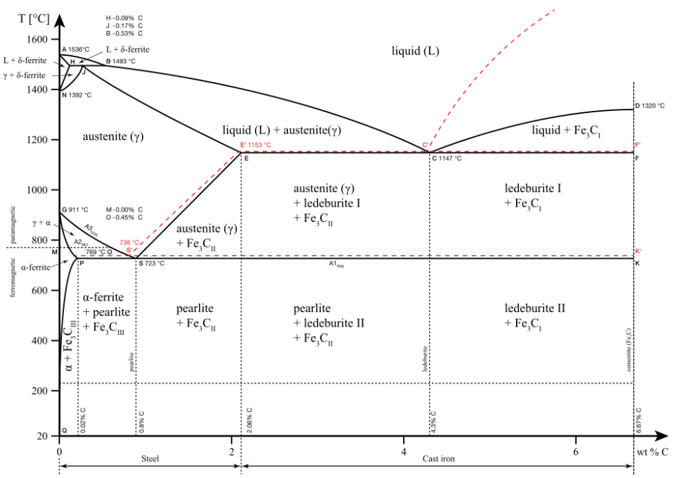 鋼鐵由鐵礦石冶煉而成,來源豐富,價格低廉。鋼鐵又稱為鐵碳合金,是鐵(Fe)與碳(C)、硅(Si)、錳(Mn)、磷(P)、硫(S)以及其他少量元素(Cr、V等)所組成的合金。通過調(diào)節(jié)鋼鐵中各種元素的含量和熱處理工藝(主要的四把火:淬火、退火、回火、正火),可以獲得各種各樣的金相組織,從而使鋼鐵具有不同的物理性能。