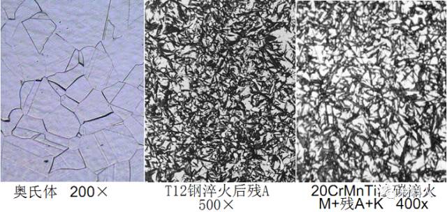 TRIP鋼(變塑鋼)即是基于奧氏體塑性、柔韌性良好的基礎開發(fā)的鋼材,利用殘余奧氏體的應變誘發(fā)相變及相變誘發(fā)塑性提高了鋼板的塑性,并改善了鋼板的成形性能。碳素或合金結(jié)構(gòu)鋼中的奧氏體在冷卻過程中轉(zhuǎn)變?yōu)槠渌?,只有在高碳鋼和滲碳鋼滲碳高溫淬火后,奧氏體才能殘留在馬氏體的間隙中存在,其金相組織由于不易受侵蝕而呈白色。