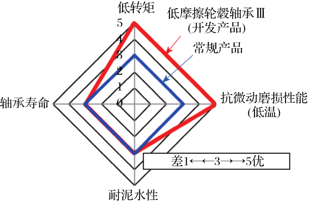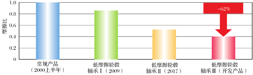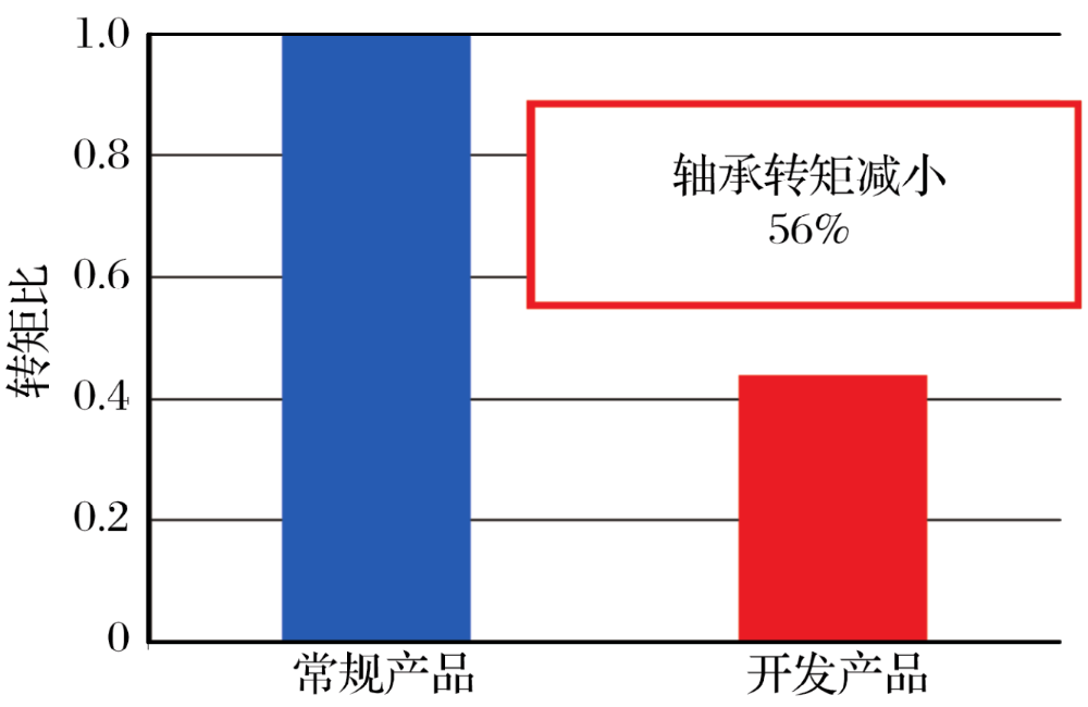 與常規(guī)產(chǎn)品相比,新開發(fā)的低摩擦輪轂軸承Ⅲ的轉(zhuǎn)矩減小了62%。通過應(yīng)用之前開發(fā)的技術(shù)參數(shù)和新開發(fā)的潤滑脂(改進(jìn)了低摩擦輪轂軸承Ⅱ的內(nèi)部潤滑脂)來實(shí)現(xiàn)轉(zhuǎn)矩的減小。