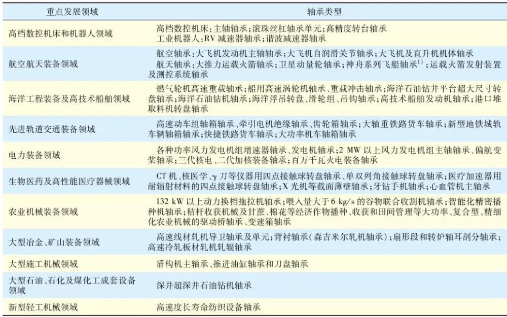 表1 “十四五”期間我國(guó)重大技術(shù)裝備配套軸承和其他高端軸承的開(kāi)發(fā)任務(wù)