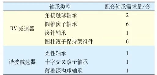 表7 工業(yè)機(jī)器人減速器配套軸承種類及數(shù)量