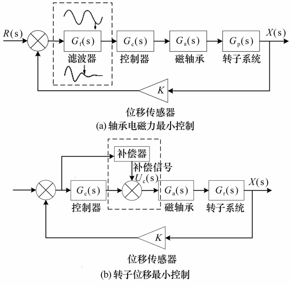 傳統(tǒng)意義上的磁懸浮轉(zhuǎn)子不平衡補(bǔ)償多是考慮磁軸承單獨(dú)支承的情況,對(duì)于磁軸承為主要支承,其他支承方式為輔助支承情況下的不平衡振動(dòng)控制,尚未見(jiàn)相關(guān)研究。例如,近年來(lái)興起的磁+氣混合軸承支承,轉(zhuǎn)子不僅受到電磁力,還受到動(dòng)壓效應(yīng)產(chǎn)生的氣浮力,轉(zhuǎn)子的不平衡周期振動(dòng)在受到控制器周期控制力的同時(shí),還受到由于氣隙周期變化產(chǎn)生的周期性波動(dòng)氣浮力的影響,對(duì)于此類支承方式下的轉(zhuǎn)子,首先需要通過(guò)研究其動(dòng)力學(xué)特性獲取轉(zhuǎn)子的不平衡振動(dòng)特征,然后進(jìn)行不平衡振動(dòng)的控制,這一研究仍待開(kāi)展。