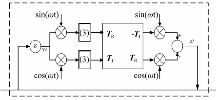 2015年,文獻(xiàn)[18]將電動(dòng)機(jī)傳動(dòng)控制中同步旋轉(zhuǎn)坐標(biāo)系(Synchronous Rotating Frame,SRF)變換的方法應(yīng)用于磁軸承系統(tǒng),其控制原理如圖7所示,相當(dāng)于一種新型的陷波濾波器,通過(guò)與控制器串聯(lián)工作在轉(zhuǎn)子低速旋轉(zhuǎn)時(shí)有良好的同步抑振性能。